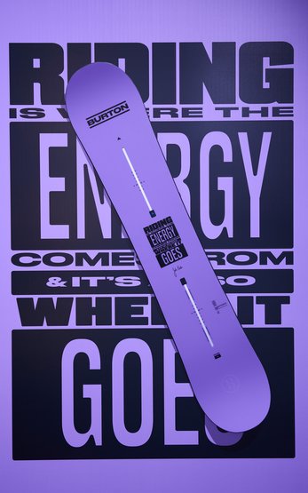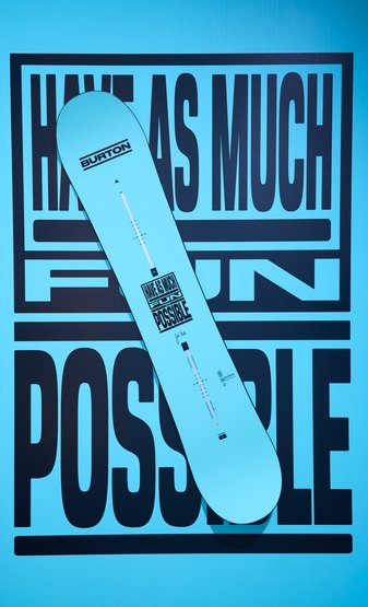 They chose the messages that resonated most with them, along with their preferred color. The result: bold, vertical BURTON wordmarks in six distinct colorways, each carrying one of Jake's quotes, right between the bindings. This was much more than selecting a quote: our team riders chose words that they believe in, that drive them, and that connect them to every other snowboarder on the planet.